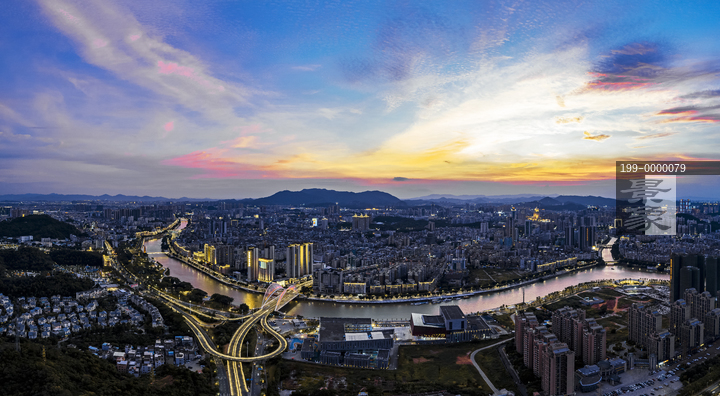 图片标题: 江门 城市天际线 夜景 市区 河流 大桥