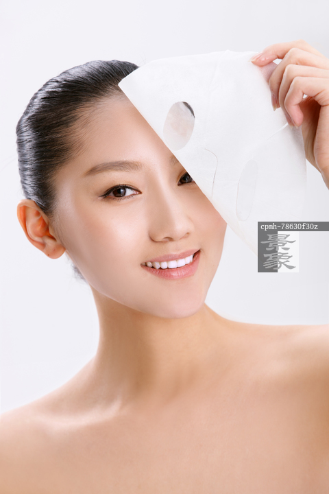 图片标题: 年轻女人拿着面膜