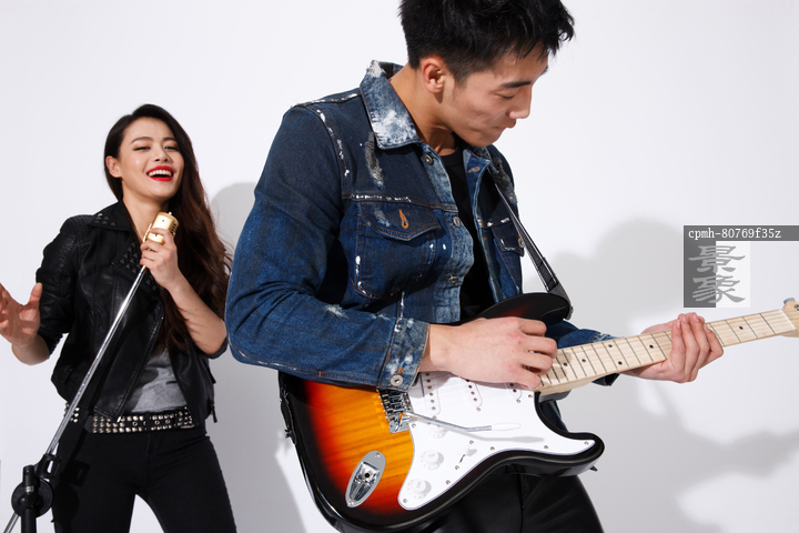 图片标题: 时尚的青年男女在唱歌