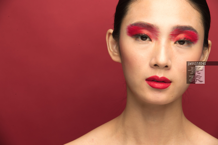 图片标题:     红色眼影彩妆美女肖像