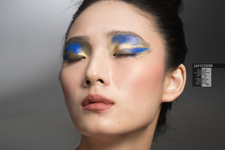 图片标题: 蓝金色系眼影美女