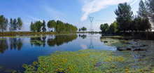 图片标题:     夏天池塘开放的黄花湿地