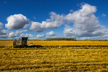 图片标题: 航拍玉米大地收割