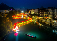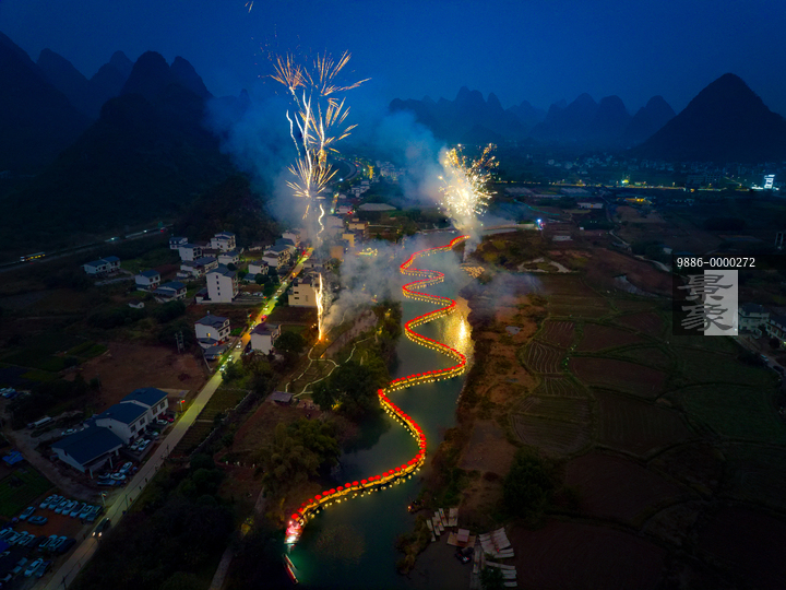 图片标题: 航拍桂林阳朔遇龙河游龙