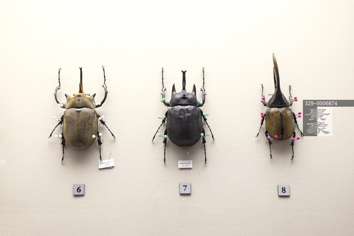 图片标题: 国博-共同家园-大自然的奇迹-毛象犀金龟(左)亚克提恩犀金龟(中)长戟犀金龟(右)