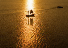 图片标题: 史诗级晚霞中的洪泽湖帆船