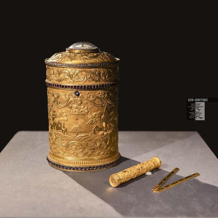 图片标题: 故宫-紫禁城与凡尔赛宫-17、18世纪的中法交往-铜镀金圆规矩箱表-18世纪-法国-故宫博物院藏