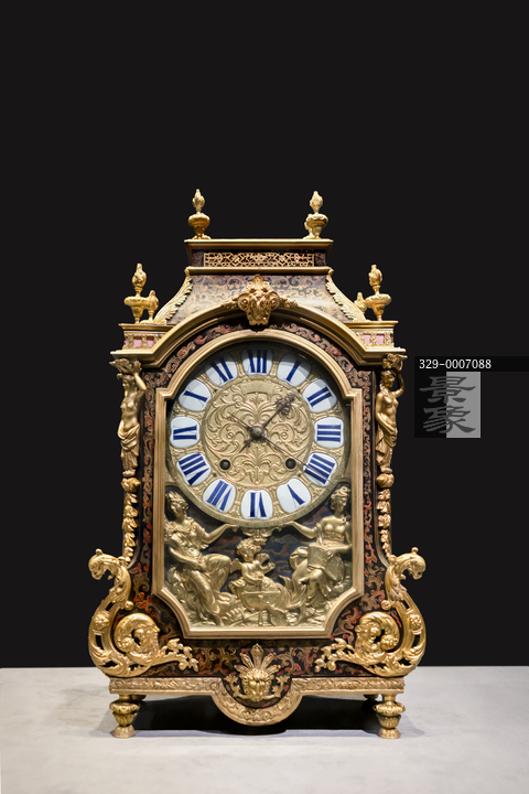 图片标题:     故宫-紫禁城与凡尔赛宫-17、18世纪的中法交往-黑漆彩绘嵌铜活鼓字盘二套钟-17世纪-法国-故宫博物院藏