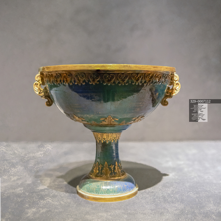 图片标题: 故宫-紫禁城与凡尔赛宫-17、18世纪的中法交往-透明珐琅夔纹双耳高足杯-清代-广州-故宫博物院藏
