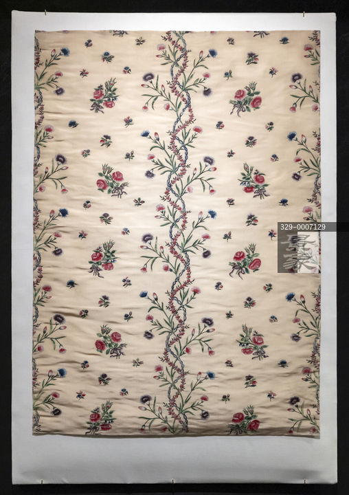 图片标题: 故宫-紫禁城与凡尔赛宫-17、18世纪的中法交往-“北京”水粉彩缎裁片-18世纪广州-洛里昂东印度公司博物馆藏