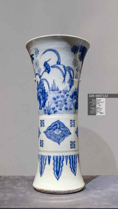 图片标题:     故宫-紫禁城与凡尔赛宫-17、18世纪的中法交往-青花水塘花鸟图花觚-明末清初-景德镇-故宫博物院藏