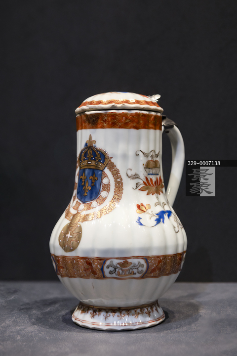 图片标题: 故宫-紫禁城与凡尔赛宫-17、18世纪的中法交往-青花加彩描金纹章瓷壶-18世纪-景德镇-吉美国立亚洲艺术博物馆藏