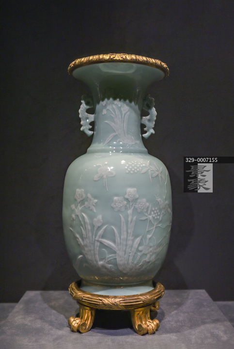 图片标题: 故宫-紫禁城与凡尔赛宫-17、18世纪的中法交往-青釉瓶-清乾隆-景德镇-凡尔赛宫与特里亚农宫国家博物馆藏