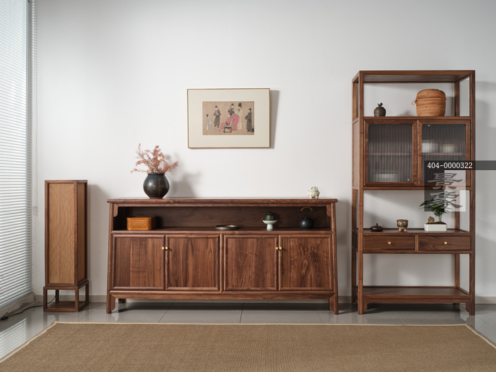 图片标题: 北美黑胡桃木新中式边柜和博古架