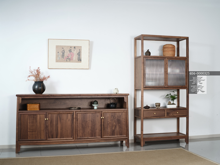 图片标题:     北美黑胡桃木新中式边柜和博古架