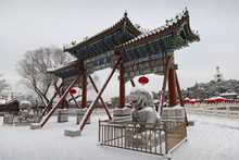 图片标题: 北京北海公园雪景-积翠牌楼石狮