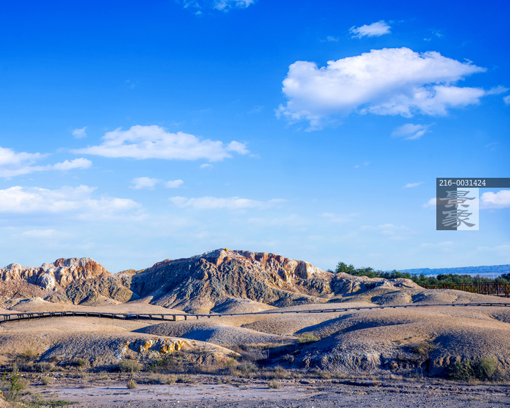 图片标题: 新疆布尔津县五彩滩雅丹地貌人行栈道