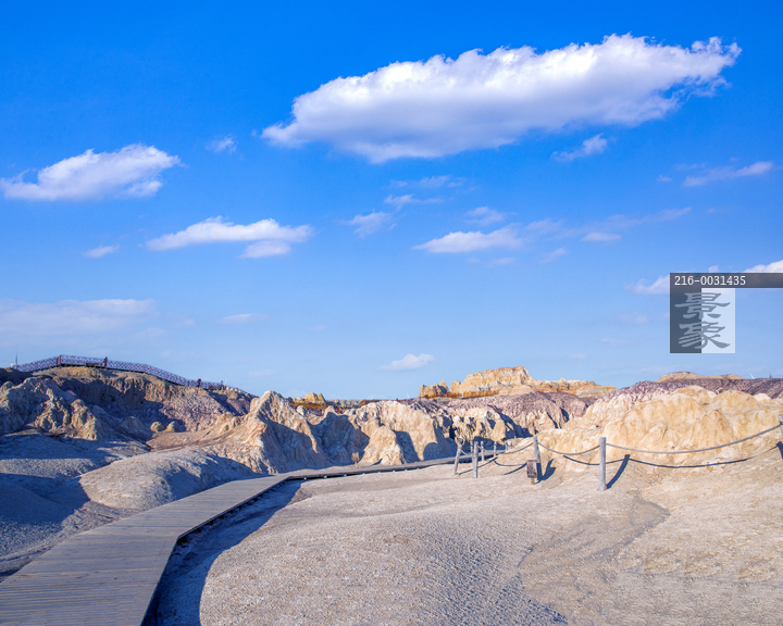 图片标题: 新疆布尔津县五彩滩雅丹地貌人行栈道