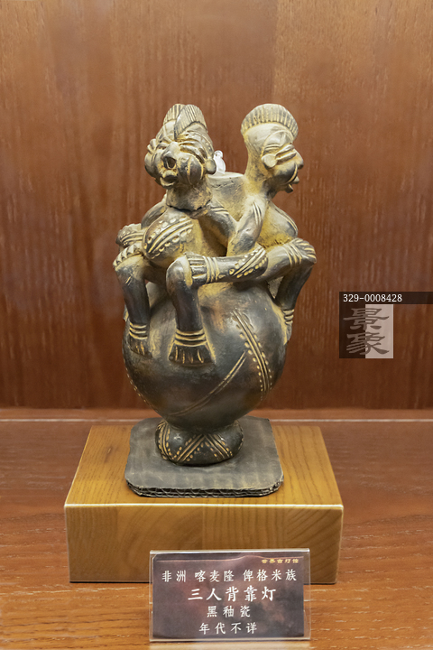 图片标题: 世界古灯馆-黑釉瓷-三人背靠灯-喀麦隆