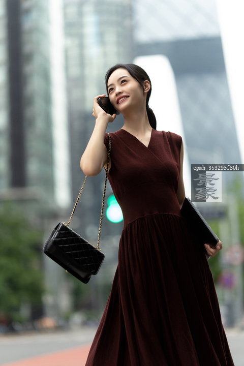 图片标题: 拿着笔记本电脑的青年女人打电话