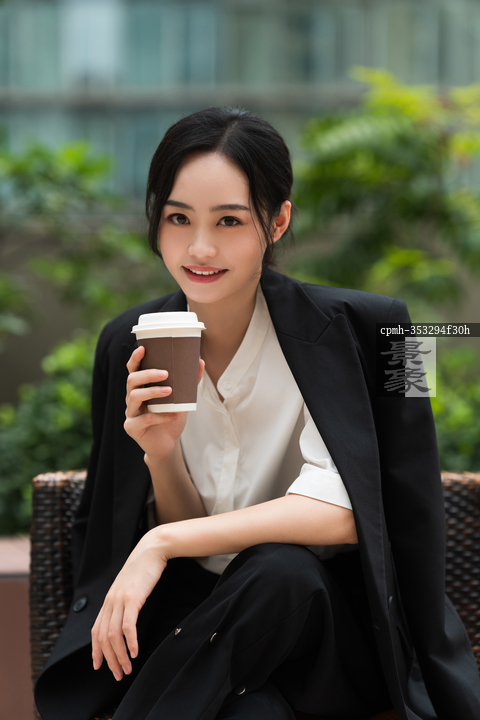 图片标题:     拿着咖啡的商务漂亮青年女人