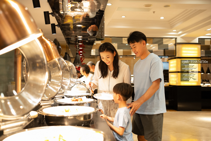 图片标题: 自助餐厅内的一家三口