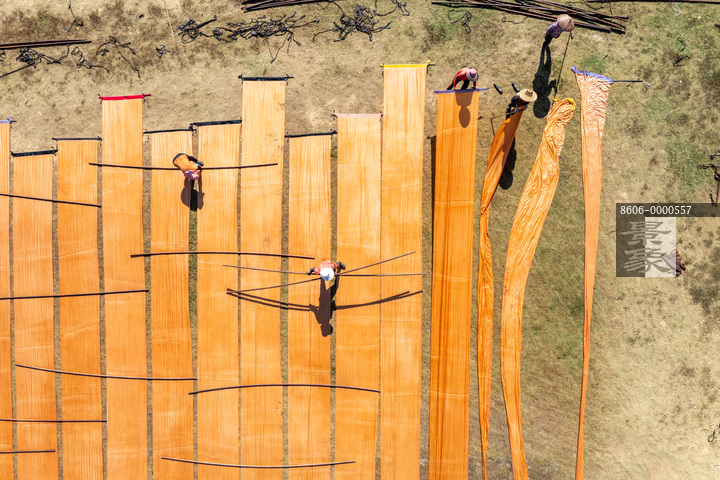 图片标题: 晾晒丝绸产品香云纱