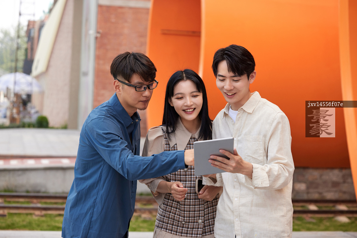 图片标题:     商务人士在户外讨论工作