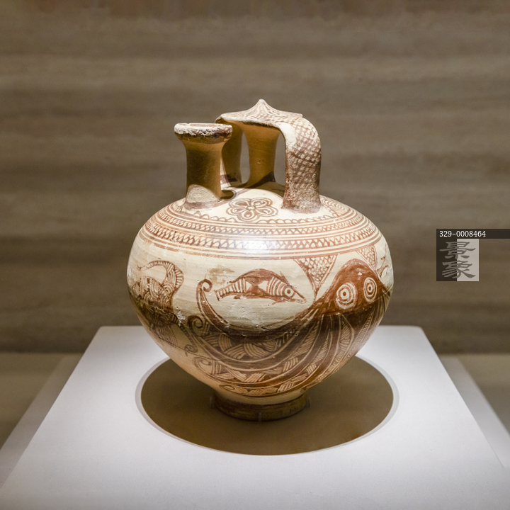 图片标题: 国博-美的多元-古希腊的艺术与生活-繁复海洋风格的马镫柄陶罐-阿提卡地区佩拉蒂公墓-公元前12世纪