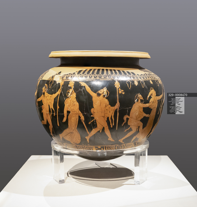 图片标题: 国博-美的多元-古希腊的艺术与生活-黑底红画陶迪诺斯罐-雅典圣道区域-公元前420年