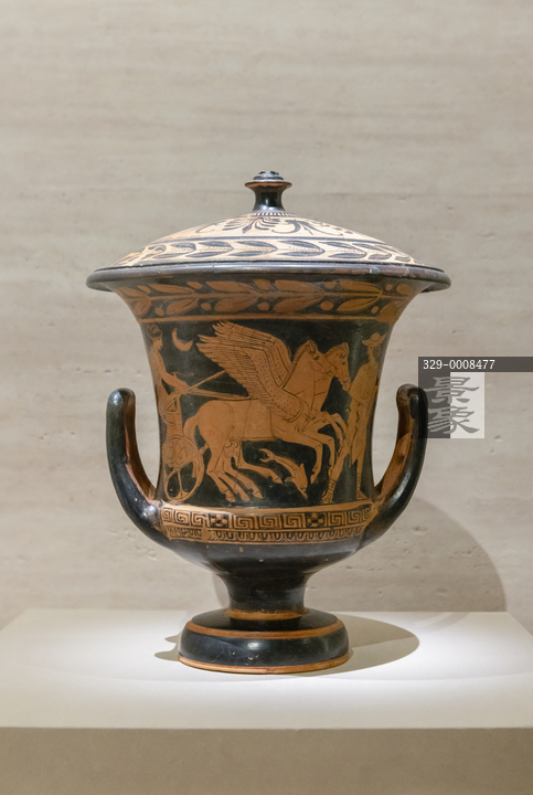 图片标题:     国博-美的多元-古希腊的艺术与生活-带盖的黑底红画双耳喷口混酒器-希腊中部的维奥蒂亚-公元前420年