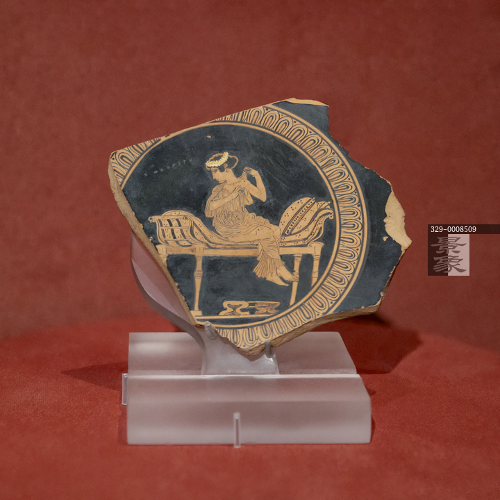 图片标题: 国博-美的多元-古希腊的艺术与生活-阿提卡黑底红画双柄浅杯残片-雅典克拉米科斯-公元前410年