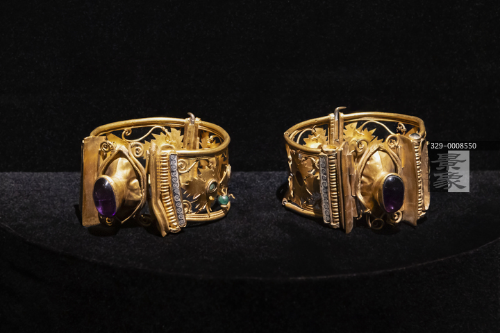 图片标题: 国博-美的多元-古希腊的艺术与生活-镶嵌宝石的金手镯-塞萨利地区卡尔季察-公元前1世纪