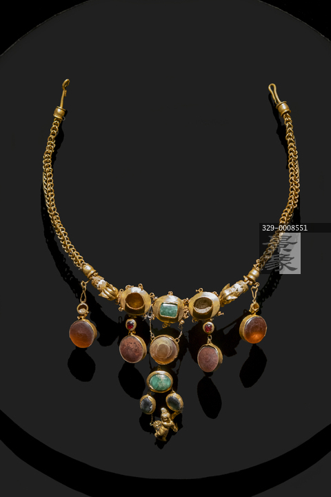 图片标题:     国博-美的多元-古希腊的艺术与生活-饰有宝石坠和厄洛斯小像的金项链-塞萨利地区卡尔季察-公元前1世纪