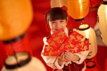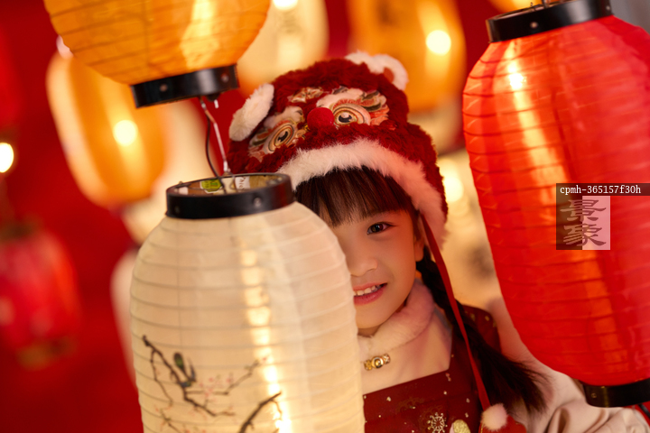 图片标题: 可爱的小女孩带着虎头帽过新年