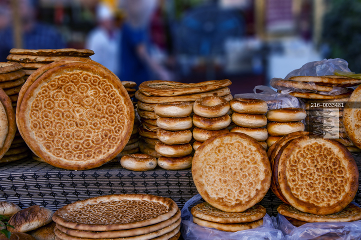 图片标题: 新疆喀什老城街头的大众食品----馕