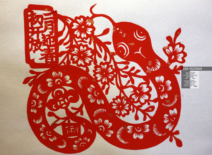图片标题: 新疆哈密:郑俐姣蛇年剪纸作品《灵蛇舞芳华》