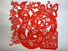 图片标题: 新疆哈密:郑俐姣蛇年剪纸作品《灵蛇舞芳华》