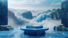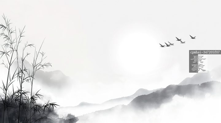 图片标题:     水墨竹叶与流动纹理的东方极简插画
