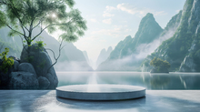 图片标题: 云海与日出交映的山谷平台意境画面