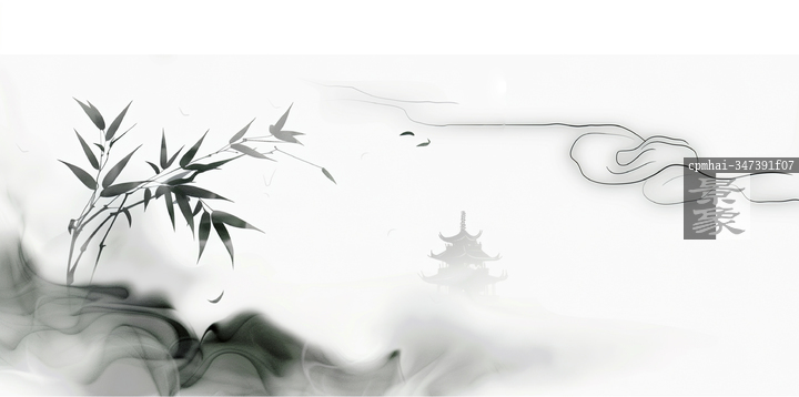 图片标题: 水墨竹叶与流动纹理的东方极简插画