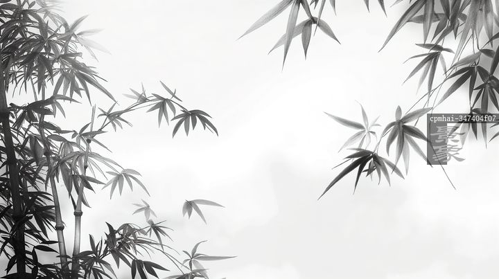 图片标题: 水墨竹叶与流动纹理的东方极简插画