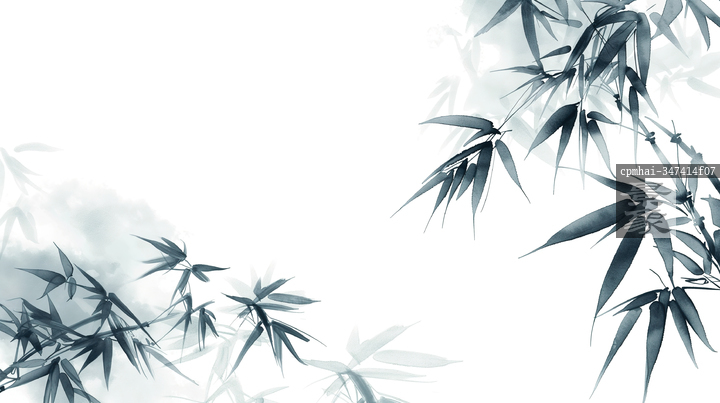图片标题: 水墨竹叶与流动纹理的东方极简插画