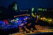 图片标题:     中国广西阳朔县游客坐竹筏夜游遇龙河