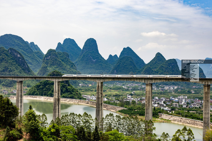 图片标题: 中国广西桂林阳朔县“山水列车”景观