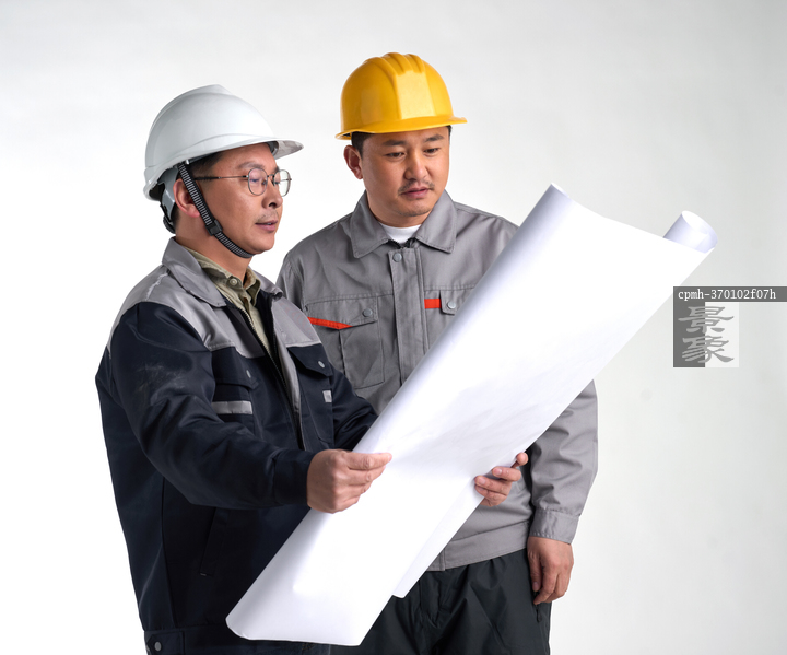 图片标题:     两名工程师研究施工图纸