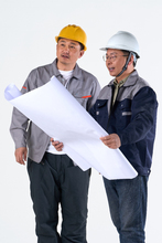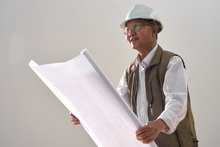 图片标题: 一名工程师研究施工图纸