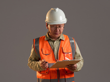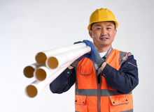 图片标题: 一名木工工人裁切木板