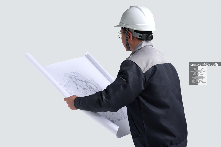 图片标题: 一名工程师研究施工图纸