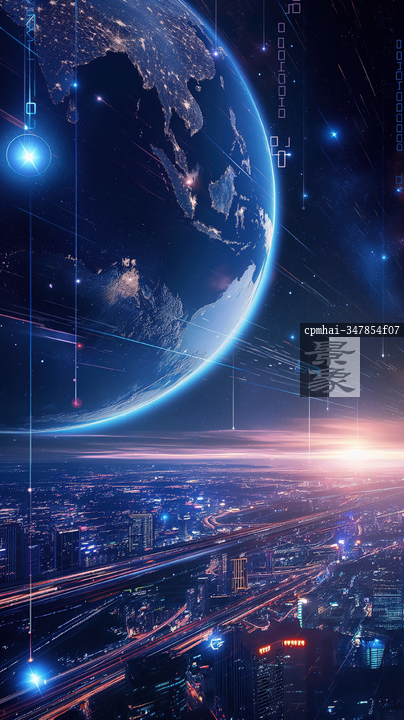 图片标题: 展现未来城市与科技交织的三维地球背景